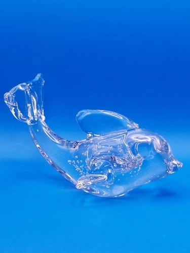 Solid Art Glass Blown Glass Porpoise Dolphin Clear Paper Weight Figurine