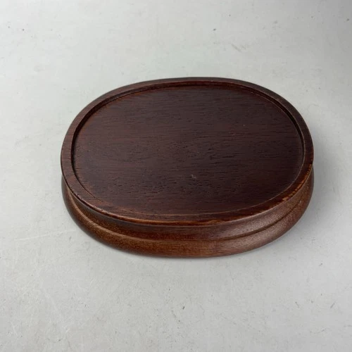 Vintage Oval Solid Wood Stand Base for Vase, Figurine, Statue 5-1/8” x 4”