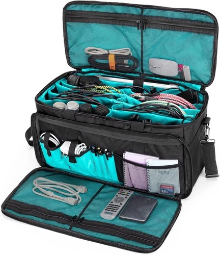 LoDrid Large Cable File Bag with Inside Padded Bottom and Detachable Dividers