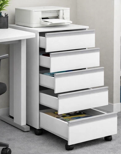 Filing Cabinet 5 Drawer Lockable Mobile Under Desk Storage Wheels White MDF Top