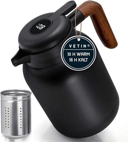 Thermos Flask 1.5L Stainless Steel, Tea Filter, Temp. Display, 10h Hot/16h Cold