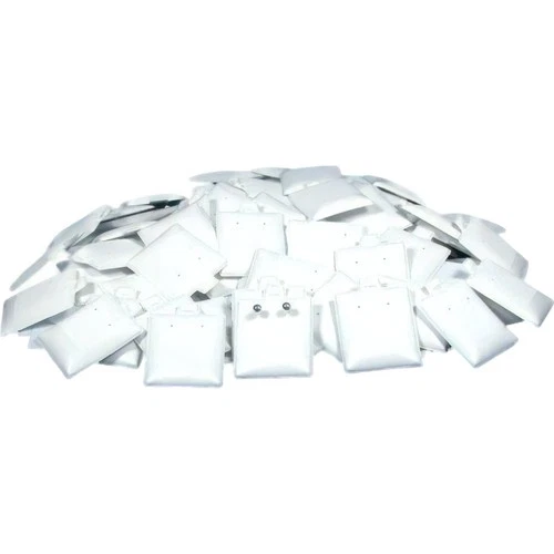 FindingKing 100 Earring Display Cards Pads Puff White Posts Studs