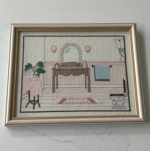 Cross Stitch Needlepoint Picture Of A Traditional / Victorian Style Bathroom
