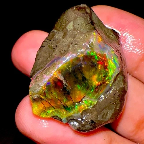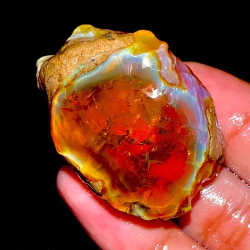 Fire cut grade opal rough crystal ,Natural Ethiopian Welo oil opal 138Ct 48x29mm