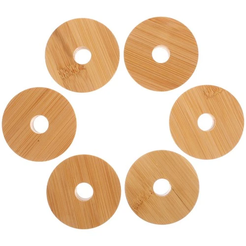 6pcs Bottle Airtight Covers Bamboo Round Glass Jar Sealing Lids Tea Cup Lids