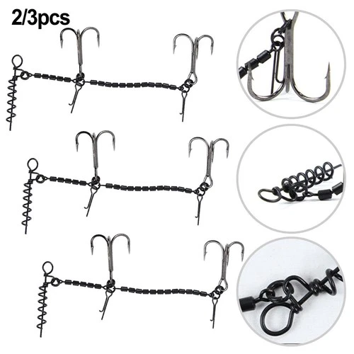 Pike Fishing Stainless Steel Treble Hook with Barbs and Corkscrew Design