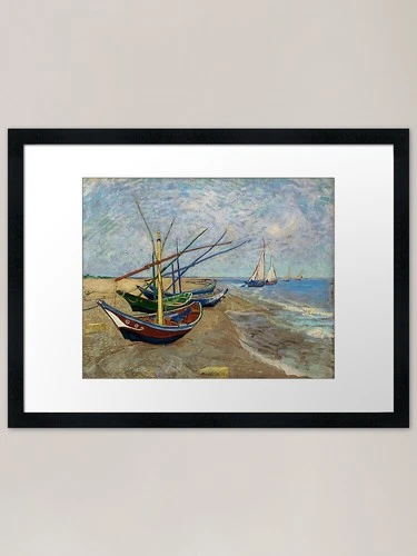 Vincent van Gogh's Fishing Boats on Framed Wall Art Poster Canvas Print Picture