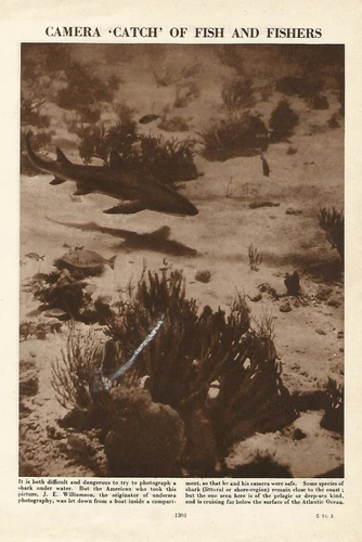FISH CAMERA CATCH OF FISH AND FISHERS SHARK c 1950 PHOTO ILLUSTRATION PRINT