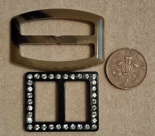 2 Large Rectangle Prongless Plastic Buckles Slide Imitation Diamante Black Brown