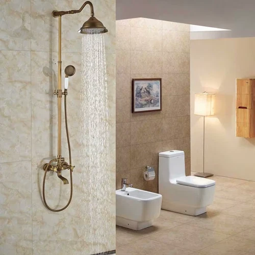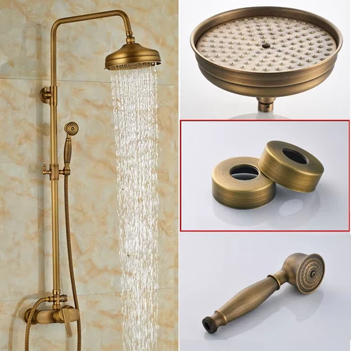 Brass Antique Rainfall Shower Set Faucet Single Handle Outdoor Shower Mixer Tap