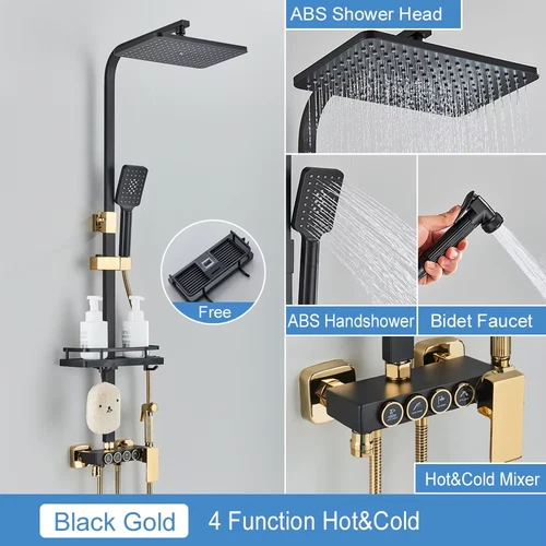Black Thermostatic LCD Shower Faucet Set Temperature Display Rainfall Bathtub Ta