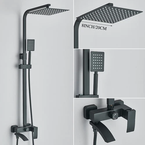 Matte Black Rainfall Shower Faucet Set 8 Inch Showerhead High Pressure Stainless