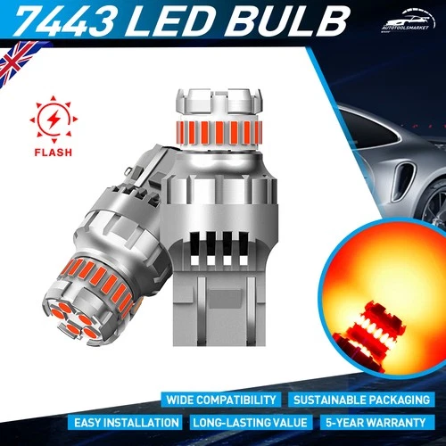 2PCS 7443 LED Red Strobe Flash Turn Signal Brake Stop Tail Parking Light Bulbs