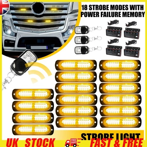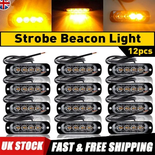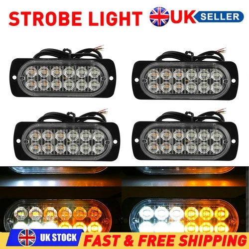 12x 12V 24V 4 LED Amber Strobe Flashing Recovery Lightbar Truck Beacon Lights Uk