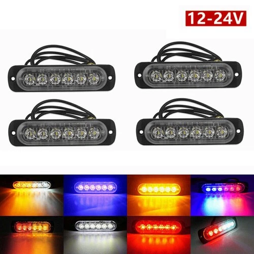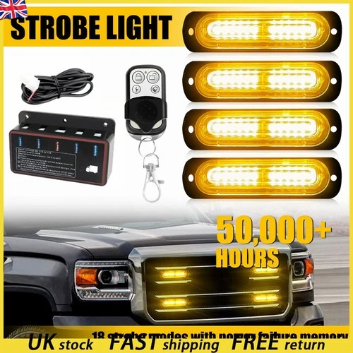 4x Amber LED Grill Emergency White Light Hazard Flash Strobe Bar Warning White