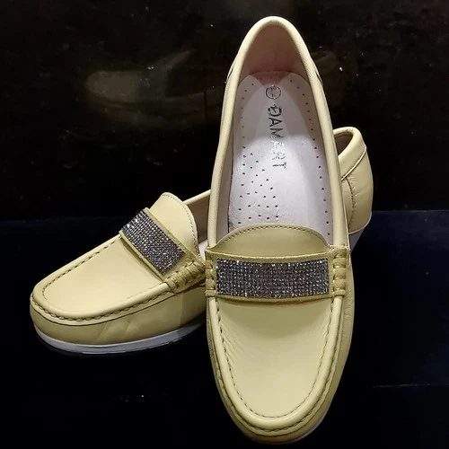 Damart Ladies Diamante Lime green Leather Loafers UK Size 6 Unworn.