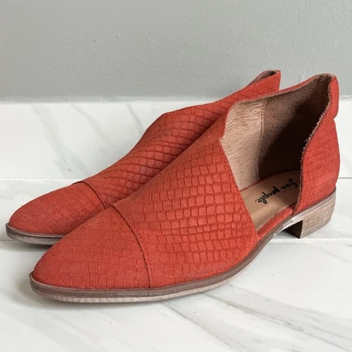Free People Royale D’Orsay Flats Orange Red Textured Point Toe Size 40 9-9.5