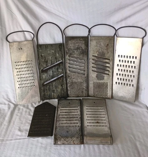 Lot Of 8 Vintage Metal Kitchen Graters Shredders Primitive Farmhouse Rapid Slaw