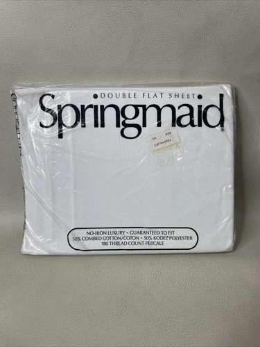 Vtg White Springmaid No Iron Combed Cotton Double Flat Sheet 81” x 96” NIP