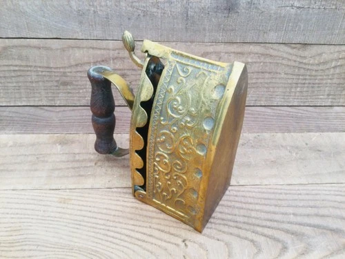 Decorative Brass Charcoal Flat Iron With Wooden Handle