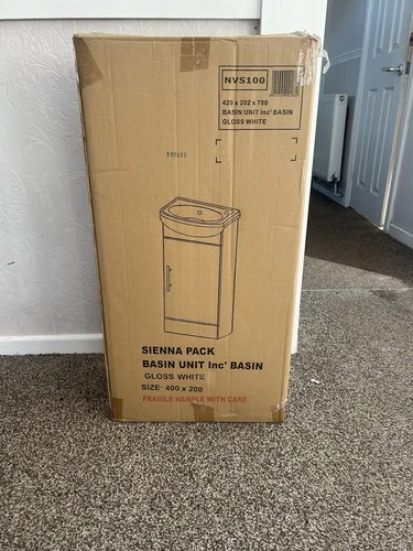 Artis FNGVWH1 Floor Standing 400mm Slim Vanity Unit and Basin Sink - White Gloss