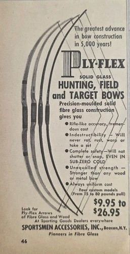 1953 Print Ad Ply-Flex Fiberglass Hunting,Field & Target Bows Archery Beacon,NY