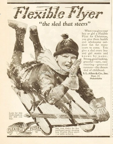 1923 Flexible Flyer Sled That Steers Sledding S L Allen Co Philadelphia PA Ad