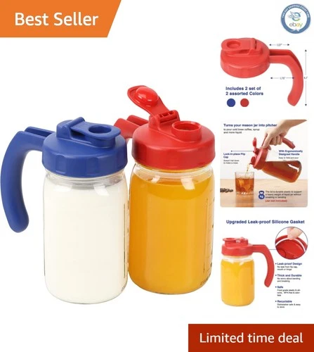 Durable BPA-Free Wide Mouth Mason Jar Lids with Comfort Grip Handle - 2 Pack