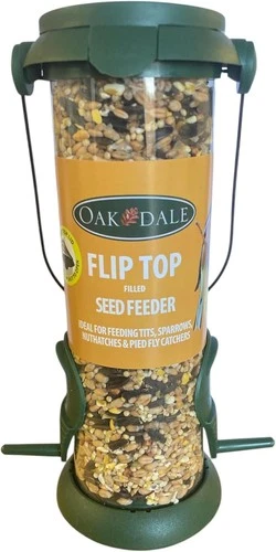 Oakdale Flip Top Premium Filled Seed Wild Bird Feeder Easy Fill With Dual Perch
