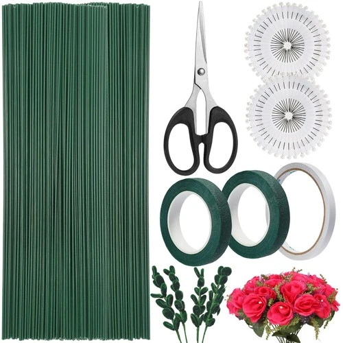 Realure 80 Pcs Florist Wire Stems with Scissor & Positioning Pin & Green