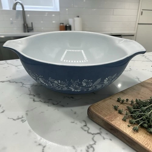 Vintage Pyrex 444 Colonial Mist Blue White Daisy Cinderella Mixing Bowl 4 Qt