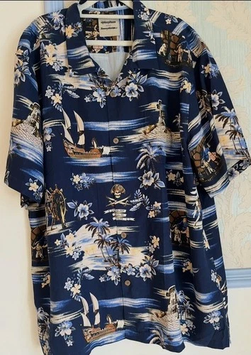 XXL Tommy Bahama Disney Shirt Mens Blue Pirates of the Caribbean Button Camp