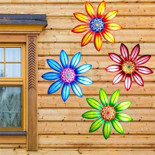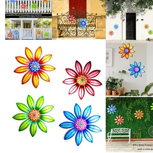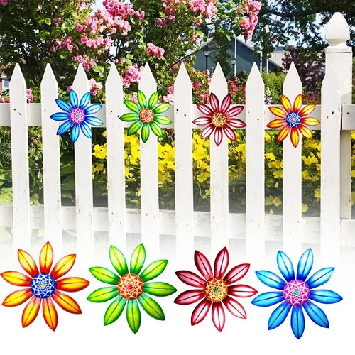 1/4PCS Home Fence Ornament Metal Flower Garden Decoration Wall Art Hanging