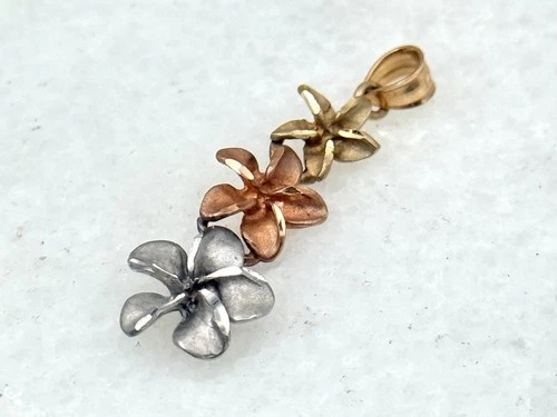 Vintage 70’s Tri Color Gold 14k 3 Hawaiian Plumeria Flower Petal Pendant