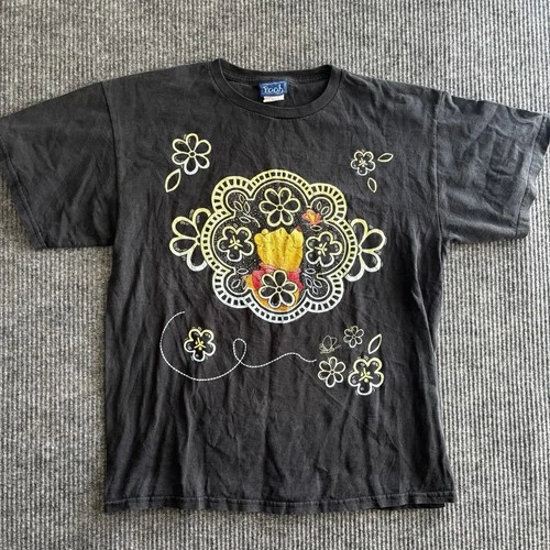 Vintage Disney Winnie Pooh Black Flowers Petal Paisley T Shirt Unisex Large