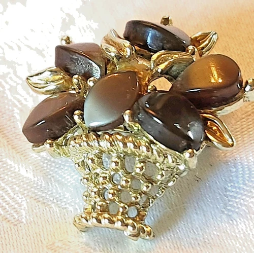 Vintage Thermoset Flower Basket Chocolate Brown Black Petals Elegance