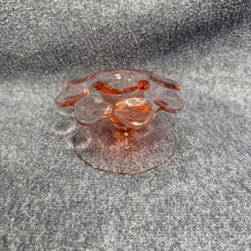 Vintage Pink Depression Glass Candle Holder Scalloped Flower Petal Design 4.5"