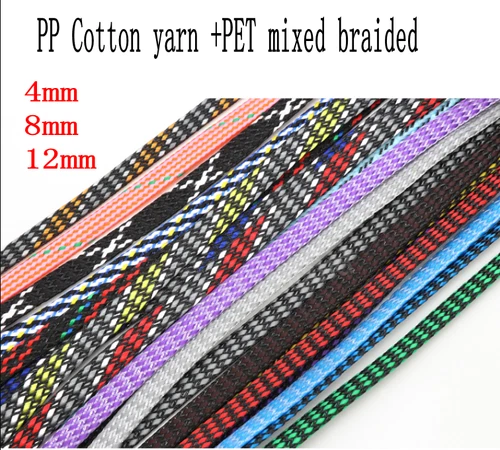 4mm 8mm 12mm PP Cotton Yarn +PET Mixed Braided Cable Sleeving-Harness-Sheathing