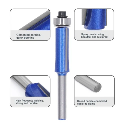 1/4in Shank Top Bearing Flush Trim Router Bit Blue Silver Color Woodworking FIS