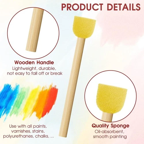 Molain 40Pcs Round Foam Paint Brushes for Acrylic Painting Wooden Handle Paint T