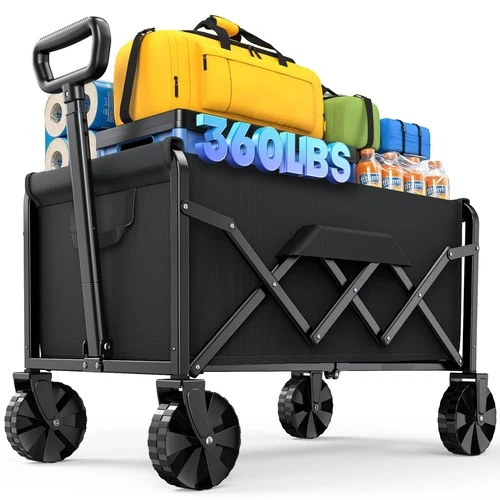 Collapsible Wagon with Wheels, Foldable Dog Wagon Carts with 360lbs Load Capa...