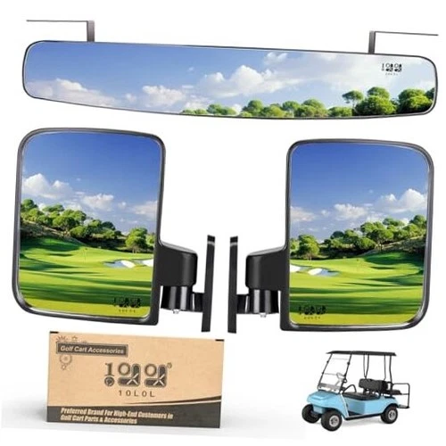 Golf Cart Mirrors Contains Folding Side Mirrors and Rear View Mirror