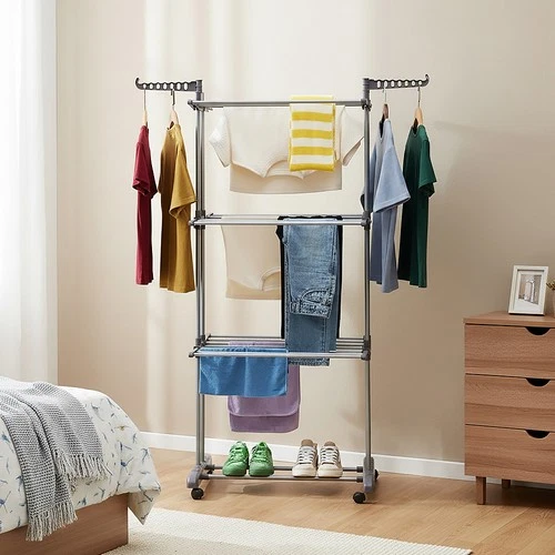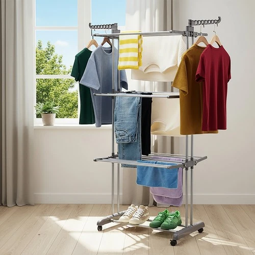 4 Tier Clothes Drying Rack with Wheels Foldable Indoor & Outdoor Laundry Airer