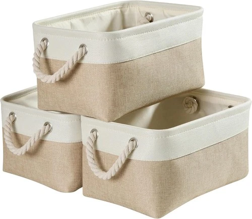 Mangata Large Storage Box Set of 3, 2 Col / 5 Sizes, Fabric Baskets with Handles