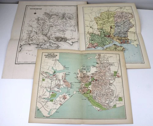 Vintage Antique 1848 1880 Maps Hampshire Southampton Isle of Wight Portsmouth