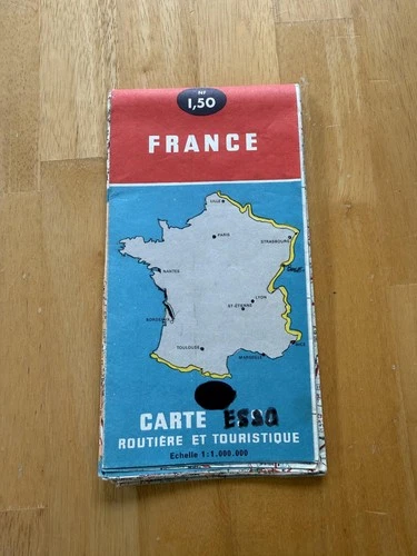 Vintage 1962 Esso France Road Map Carte Routière Touristique Folding Travel