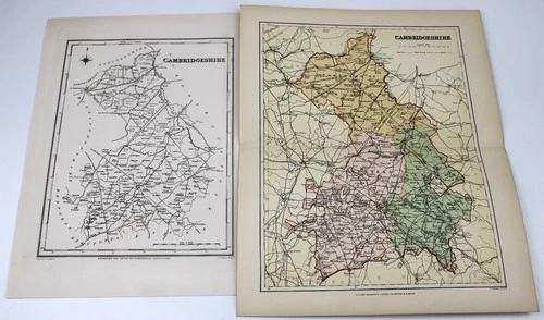 Vintage Antique 1848 & 1880 Maps Cambridgeshire Wisbech Newmarket Cambridge Fens