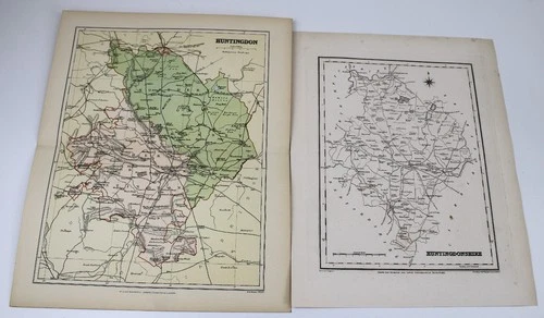 Vintage Antique 1848 1880 Maps Huntingdonshire Huntingdon St Neots Peterborough
