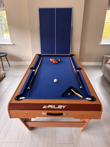 Riley 5 ft Folding Pool/Table Tennis Table with balls bats net and cues RRP £350