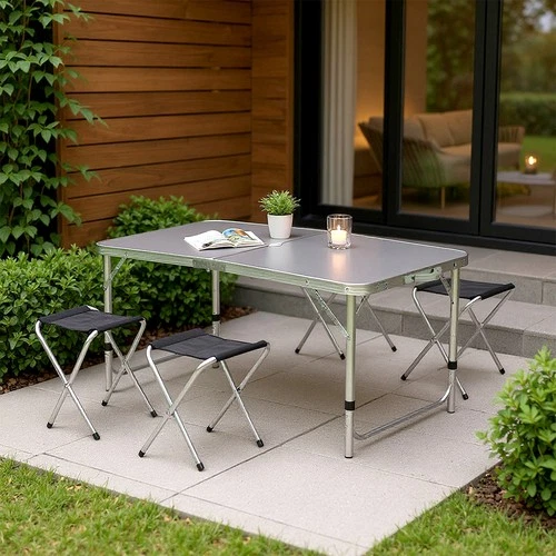 Camping Folding Table Extended Outdoor Aluminum Alloy With 4 Chairs For Resting